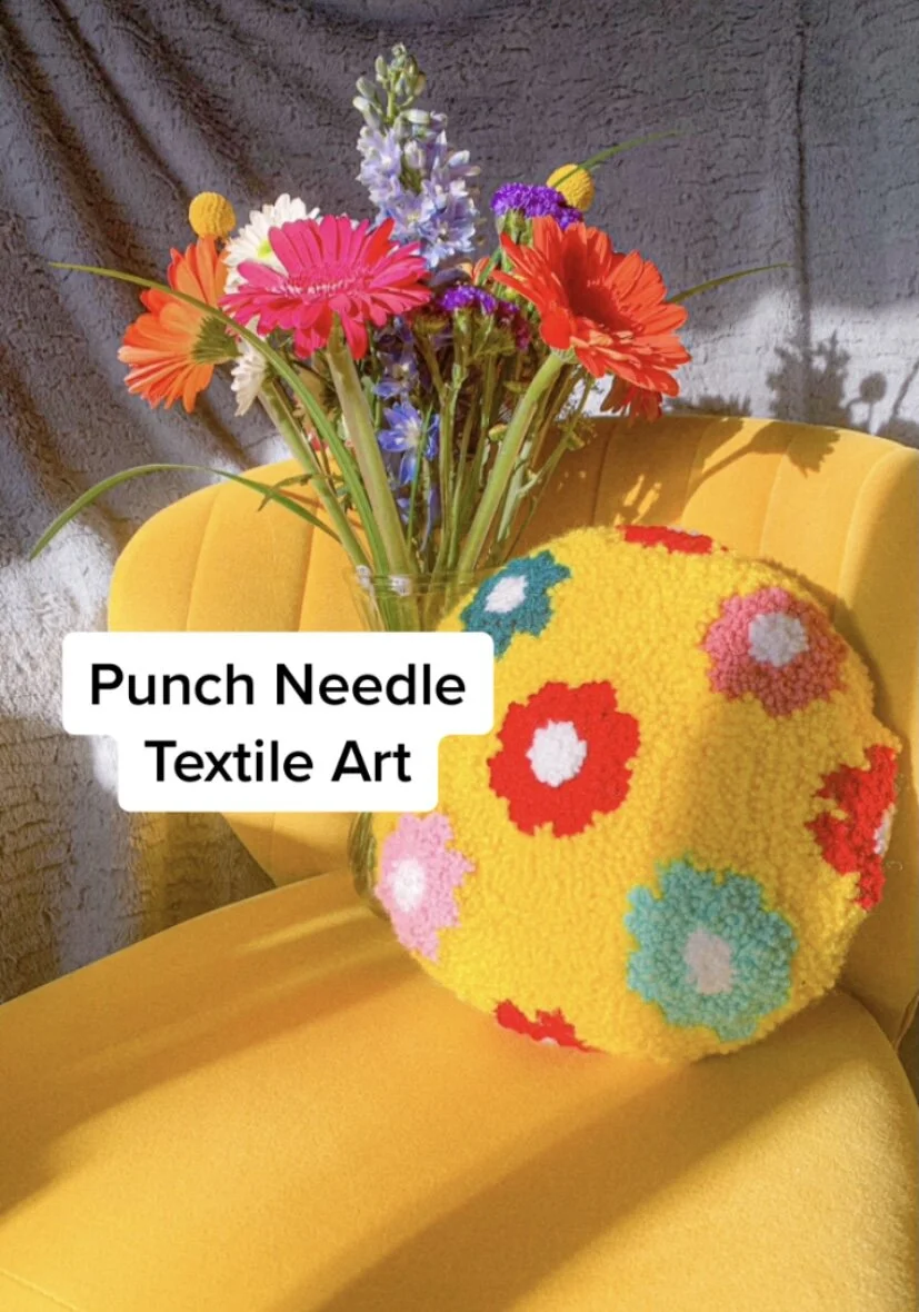 I’ve always been interested in finding ways to create new textiles and textures, and found myself learning the art of punch needling. I’ve been able to apply this concept to home decor, accessories, and textile art by creating decorative pillows, tufted mirrors, rugs, and more.