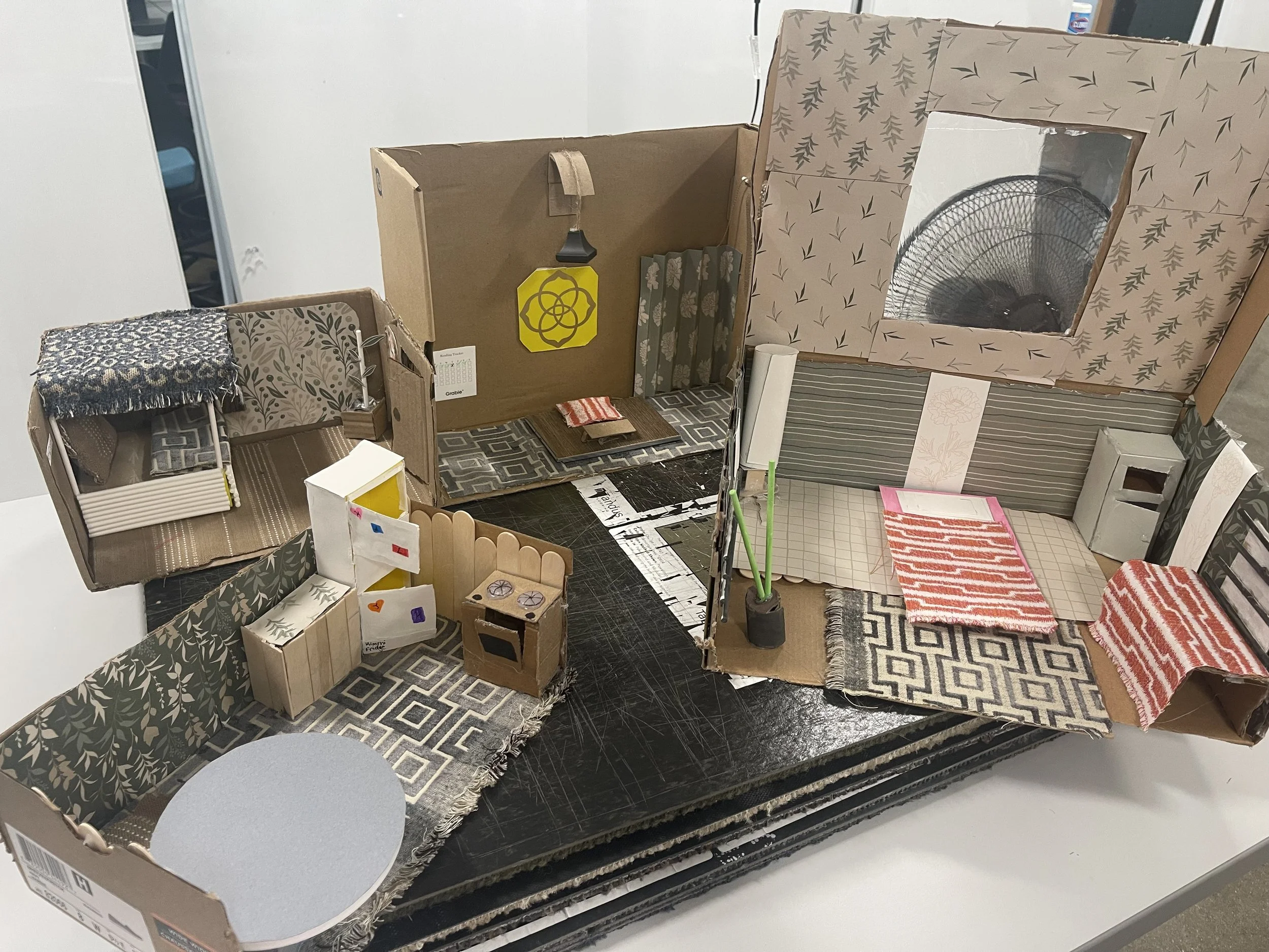 Illinois State University’s Family and Consumer Sciences department led a local summer camp for 30 middle schoolers, offering courses in fashion, interior design, human development, and culinary. Myself and one other student led the fashion and interior design sessions. For the fashion project, students created bucket hats that represented their own identity, inspired by the symbolism that is used in traditional Korean headwear. The interior design project focused on applying Korean interior design principles to build a shoebox diorama. Students were given the choice to design a bedroom, a living room, or a kitchen. The focus when creating the curriculum for this camp was to make sure that we were respectful and understanding the difference between cultural appreciation and appropriation.