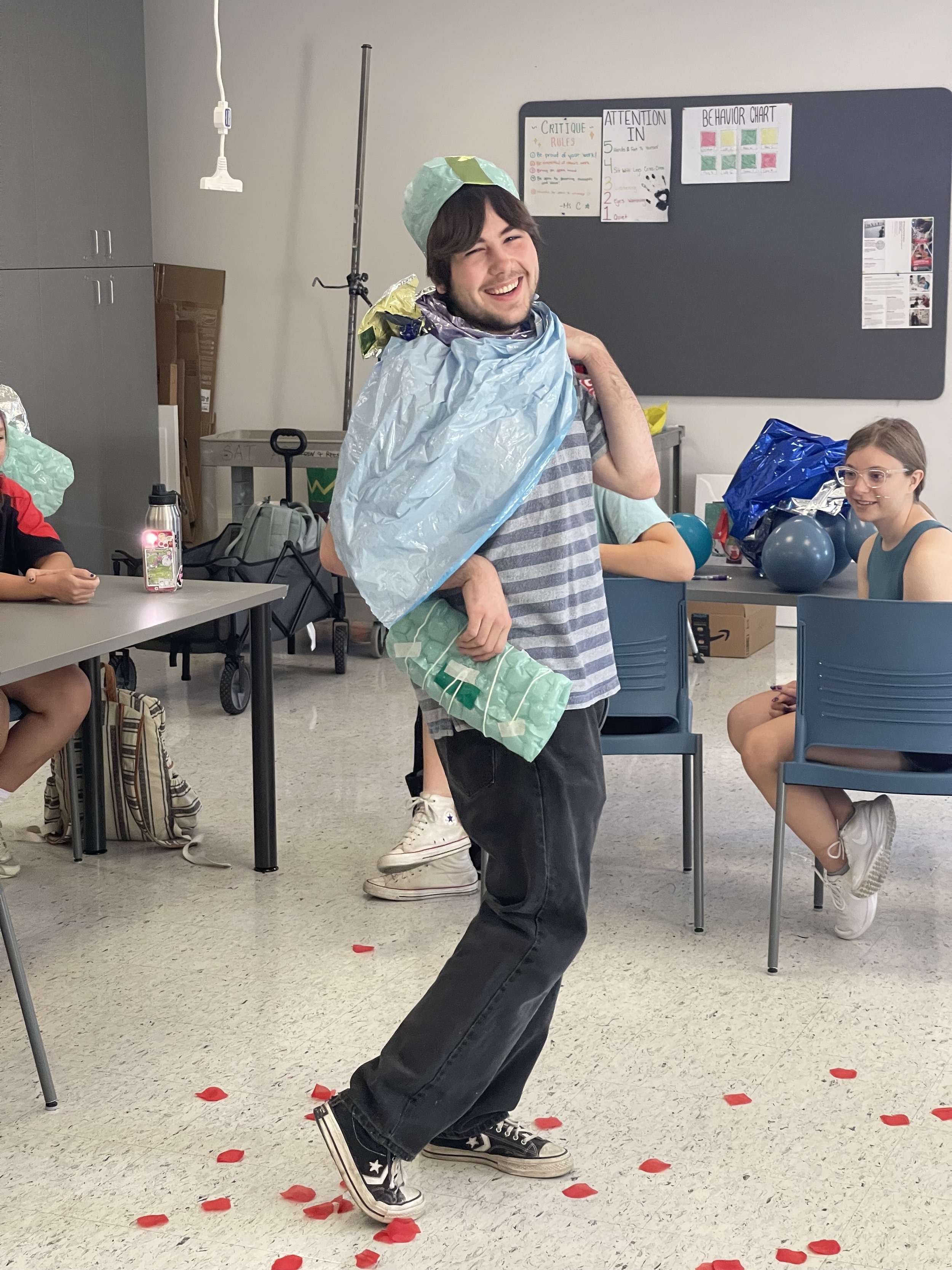 As the TA for Art 201: Media, Techniques & Inquiry For Elementary & Middle Level School, I had the opportunity to lead an Unconventional Design Challenge, “Trash to Treasure”. Students were able to participate in this lesson on how to use sustainable materials to create wearable designs, as well as learn how to implement this idea into their future classrooms.